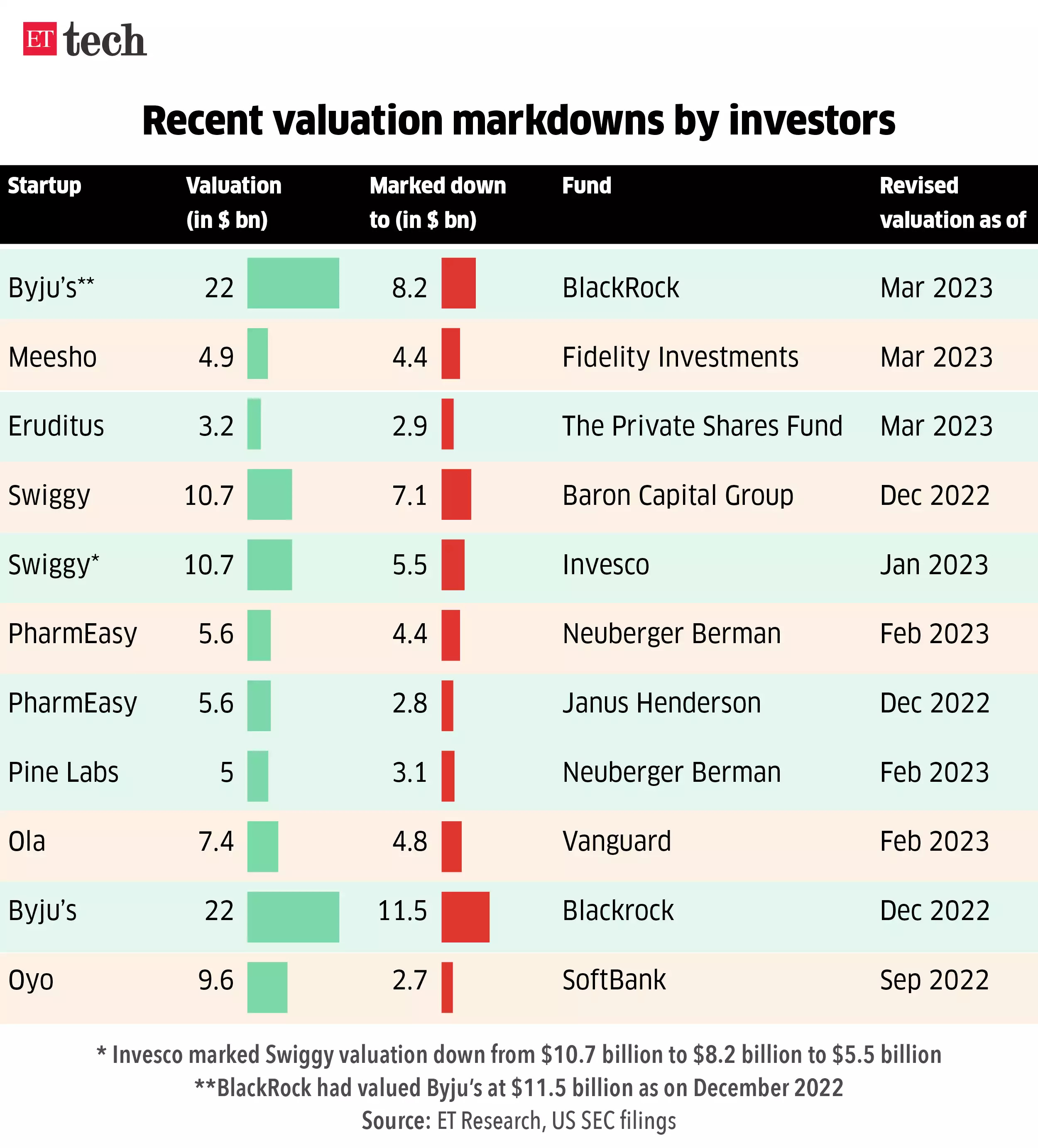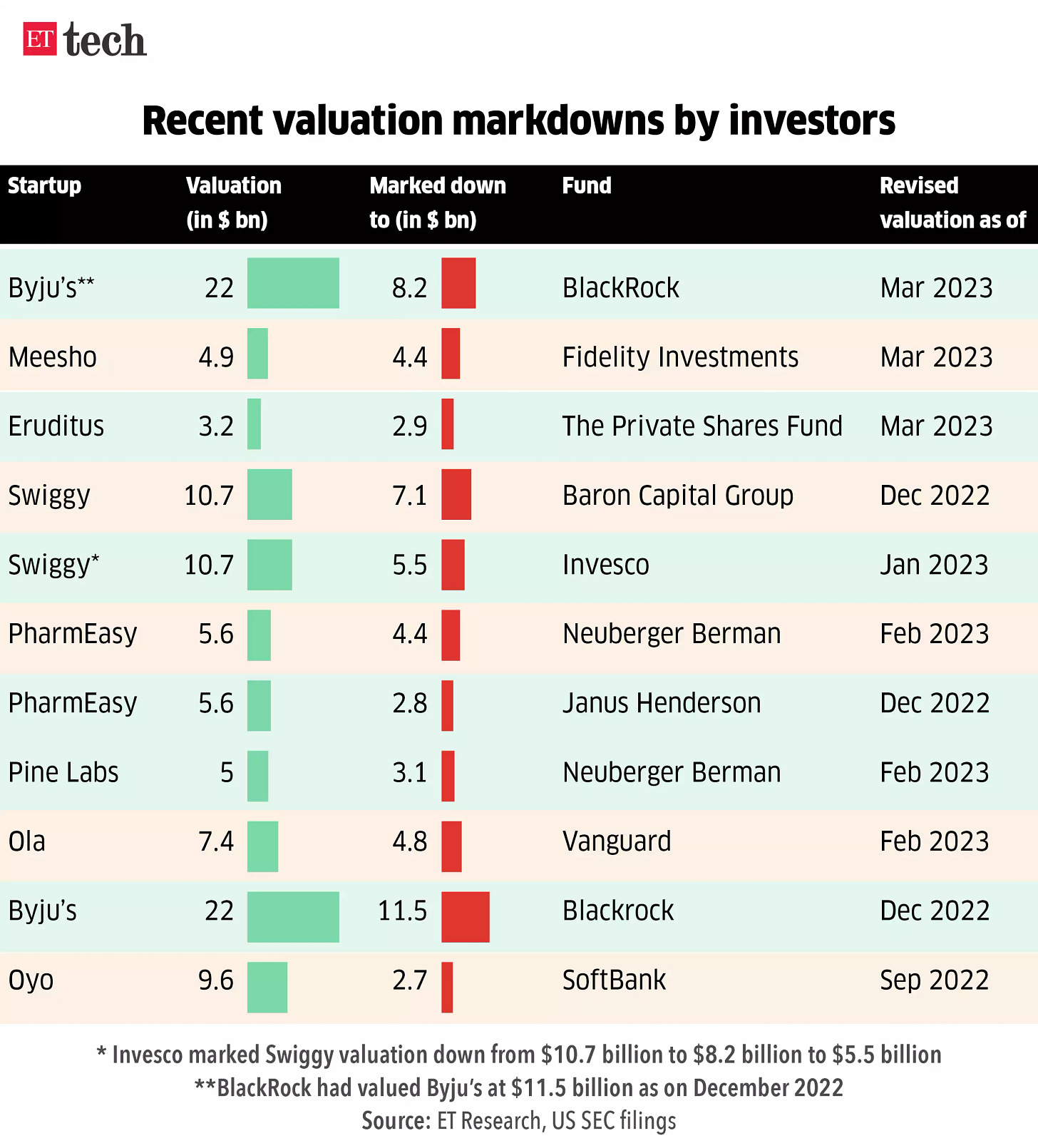 Hence consider such valuation markdowns purely indicative and not a fair value, as the true value of a startup can only be determined by the market demand and supply at the time of exit.