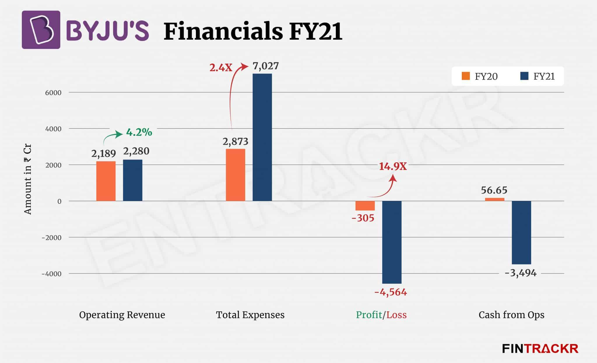 In FY22 acquisitions of Aakash for $1bn, Singapore-based Great Learning for $600 Mn, Toppr for $150 Mn, US startup Epic for $500 Mn, Tynker for $100 Mn and Whodat, GradeUp, HashLearn and Austria-based GeoGebra for an undisclosed sum.